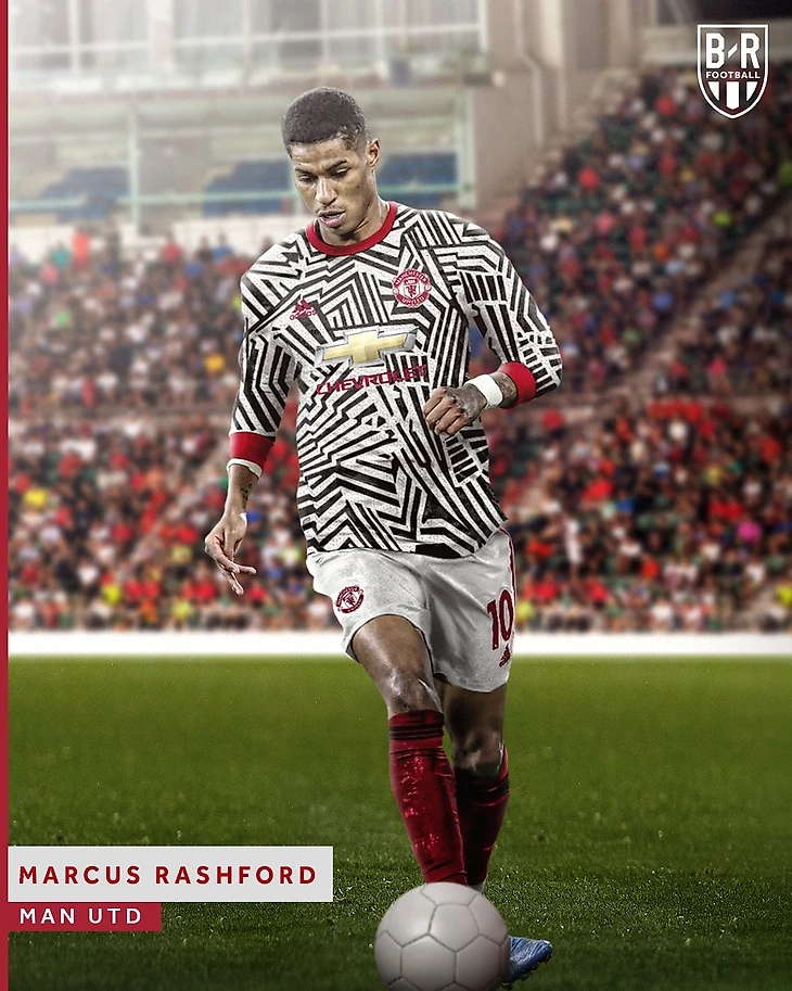 Концепт от Adidas, который точно не оставит равнодушным! Небанально, с узором, красными вставками. По сравнению с двумя остальными комплектами для «МЮ» – однозначно лайк!