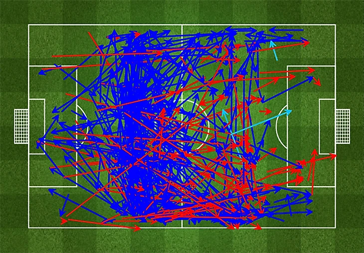 Справедливости ради надо сказать, что примерно через час Ван Гал одумался и отчетливо осознал, что на этот раз все эти прибаутки-шуточки, расчитанные на овации посвященных, могут впервые не совпасть с результатом – Аргентина намертво вросла в землю и никуда двигаться не хотела. Это факт – блокирующий пакет акции на всю эту стыдобу надежно держала Аргентина. Голландия хоть рыпалась. Сравните росчерки движения мяча у Аргентины и Голландии в этом матче.