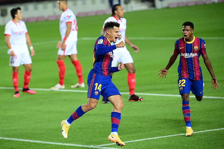 Выходя Тринкао и Педри. К самим игрокам у меня претензий нет и радует, что они выходят на поле и эпизодами очень неплохо смотрится, но лично мне казалось, что в матче против такой организованной обороны, какая была у «Севильи» может помочь что-то спонтанное, экстраординарное. И на скамейке у команды есть такой игрок, способный это показать. Это Усман Дембеле, которого Куман по какой-то причине не замечает, а в этом матче он мог помочь.