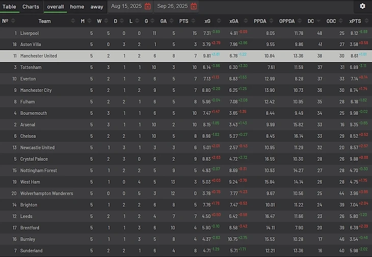 Предпоследний тур АПЛ перед паузой не за горами. Самое время поговорить о том, что ожидать от очередного матча «Манчестер Юнайтед» с «Сандерлендом». «Коты» неожиданно эффективно держатся наверху, Вильсон Изидор привлекает любителей всяких фентези, а значит это тот соперник, с которым «Юнайтед» придётся поковыряться, быть может, забить на гол больше, а может и на гол меньше. Ну классом задавить должны. Однако, матч с «Брентфордом» показал, что пациент скорее мёртв, чем жив. Это ещё показывал матч с «Челси», но там была обманная заковырка в лице её величества победы. Победителей мы не судим, а по сути игра, пошедшая по рельсам, а потом с них сошедшая, принесла «МЮ» победу. Сверхудачный дебют, а далее всё, как по маслу. Тут и замены Марески, и поплывший «Челси» играли на руку манкунианцам. В то время, как удаление Каземиро, откинуло «Юнайтед» к своим воротам. По сути обе команды не показали ничего изобретательно, что вылезло в приветы от «Брентфорда» и «Брайтона» с одинаковым счётом для соперников. Говоря чисто за «Юнайтед» скажем, что футбол в красном Манчестере абсолютно мёртвый. «Юнайтед» будто бы поставил несколько интересных розыгрышей и блоков на предсезонке, а теперь всеми силами пытается это дело прикопипастить тогда, когда играть нужно серьёзно. В головах пустота, Бруно задыхается в центре. Против «Борнмута» 1 пас низом в пределах 20 штрафной против 6 допущенных при среднем соотношении 6,8 (-5.8 в последней игре) на 6,0 (средняя цифра худших последних сезонов). А весь креатив надо бросать не на «Сити», «Челси», «Арсенал». С топами играть проще, потому что на сильные места всегда можно найти слабые. Вот сломать «Брентфорд», который ну скажем так вроде бы тупее по мысли и примитивнее, куда сложнее. Приходится биться об бетонную стену, плюс на мяче «пчёлы» ещё и гораздо интереснее в виду неспособности/нежелания «Юнайтед» к банальной обороне низким блоком. В общем мысли нет, баланса нет, впереди «Сандерленд».