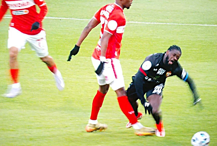 3:26 - Мартинс нарушает правила в центре поля, без грубости или попытки сорвать атаку (Фото 1), Левников зачем-то сажает хавбека Спартака на жёлтую карточку.