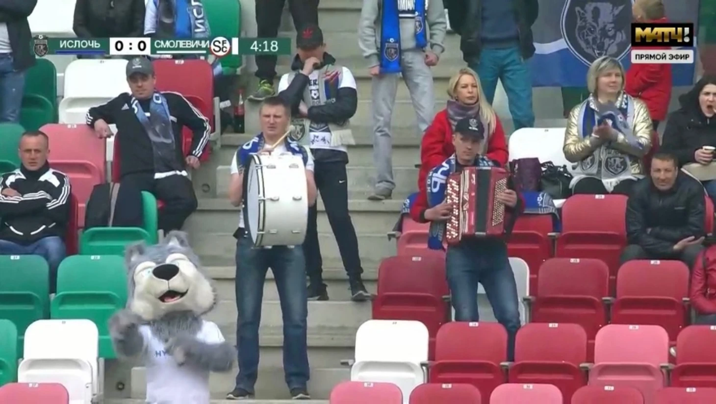 Первый же поединок высшей лиги белорусского футбола, который показали на "Матч тв" сразу породил огромное количество мемов и шуток про уже знаменитого баяниста "Ислочи", но его мы оставим на десерт, а пока посмотрим какими болельщицкими кадрами могут гордиться в других уголкам Беларуси.