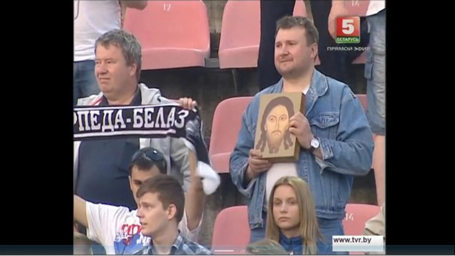 Мне сразу на память приходит один из жодинских болельщиков. Это было на финальном матче за кубок Беларуси сезона 2015/2016, "Торпедо-БЕЛАЗ" встречалось с борисовским "БАТЭ". На решающий поединок он пришёл не с "розой", не с флагом, а с иконой. В тот вечер ему не было равных на трибунах. Операторы то и дело выхватывали его из толпы и демонстрировали на телевизионные экраны страны. Но надо отдать должное этому преданному автозаводцу, игроки "Торпедо-БЕЛАЗ" в тот вечер подняли на головами заветный трофей, обыграв грозный БАТЭ в серии послематчевых пенальти, видимо не обошлось все таки без божьей помощи.