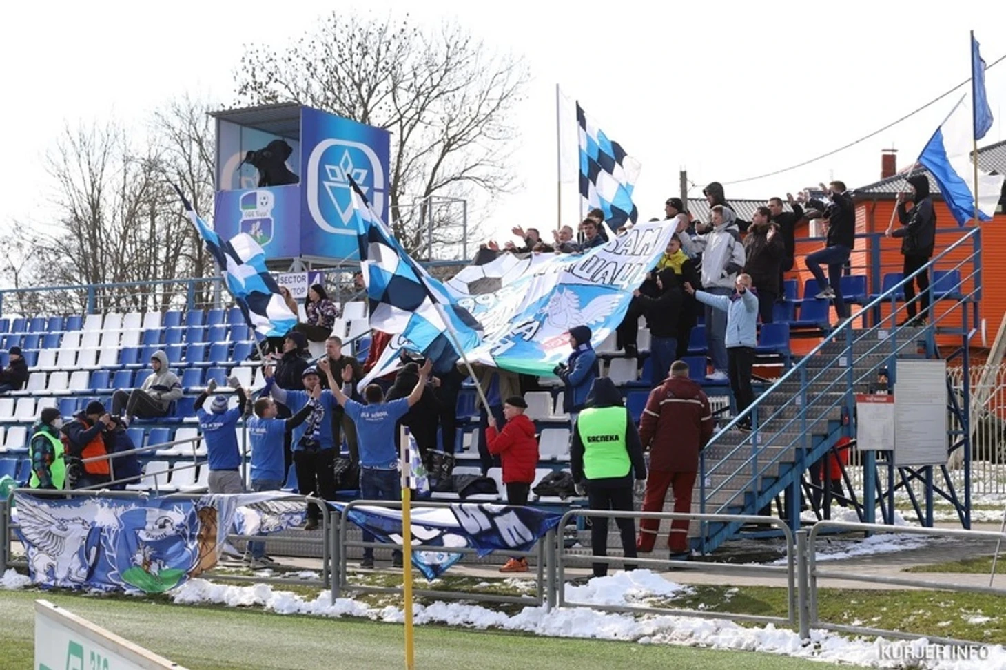 фанаты СФК "Слуцк" на первом туре против ФК "Славия" (Мозырь)