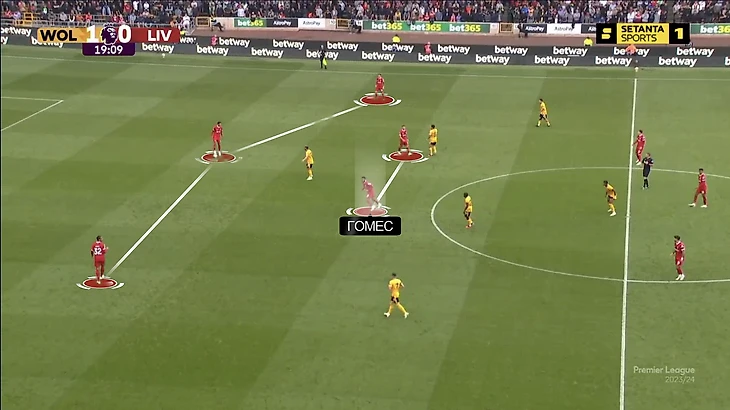 Это не привело к граду моментов, но позволило растянуть схему соперника и запереть его на своей половине. В какой-то момент тренер «Вулверхэмптона» Гари О’Нил выпустил второго правого защитника – лишь бы сдержать смелую расстановку «Ливерпуля».
