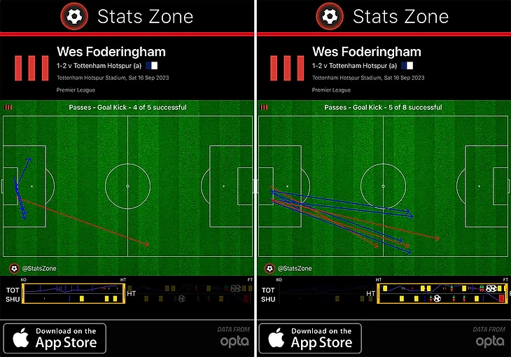 «Мы начинаем через Анела [ЦЗ Ахмедходжич] или Баша [ЦЗ Башем] и играем вперед. Сделали так пару раз – и «Тоттенхэм» подстроился [увеличив давление]. Так что Уэсли надо было начинать по-другому. И ему говорят поторопиться. Почему? Нам нужно ответить на перестроение «Тоттенхэма» и вести себя иначе.