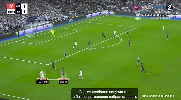 Матч «Реал Мадрид» – «Реал Сосьедад» решился в очной дуэли Кубо-Гарсия. Оба игрока атаковали максимально неудобным для оппонента образом.