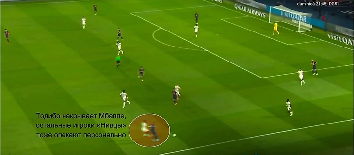 Первый режим с прессингом пробовали «Ланс» и «Лион», но не так качественно, как «Ницца». «ПСЖ» тогда гораздо чаще выходил из обороны и создавал моменты, такой футбол – рай для Килиана Мбаппе. «Ницца» прессинговала дисциплинированнее.