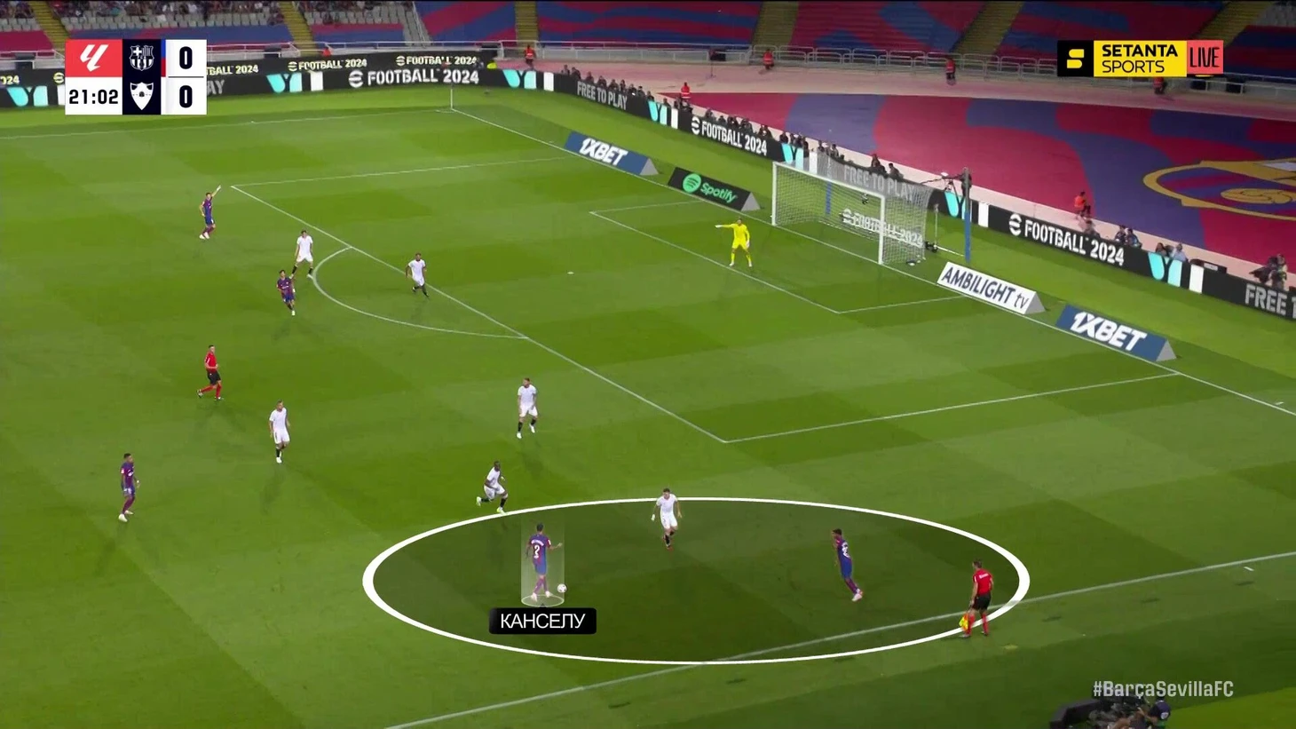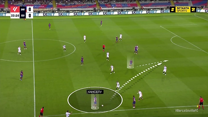 Это не значит, что «Барса» оставалась без моментов. Просто у них был неожиданный источник. Главным созидателем стал Жоау Канселу, который располагался на фланге, а не смещался в центр. «Севилья» периодически давала ему свободу, а он наказывал: