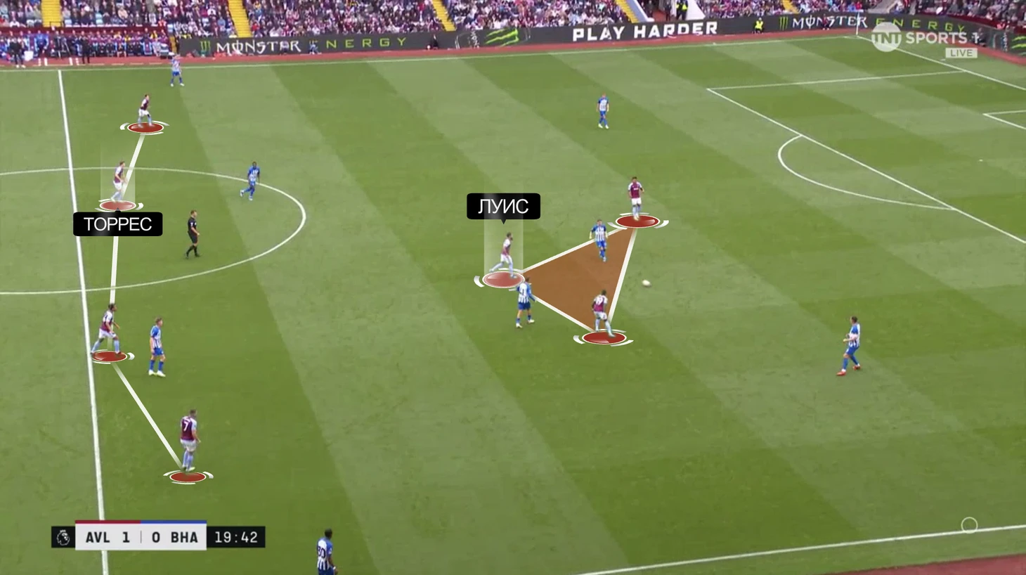 Первая – оригинальная схема при розыгрышах «Брайтона». «Вилла» не играла персонально по всему полю (оставляли страховку), но хорошо сдерживала соперника. Опорник Дуглас Луис поднимался вперед и образовывал тройку впереди, а его место занимал центральный защитник Пау Торрес. Похожую штуку в прошлом сезоне пробовал Эрик Тен Хаг с Люком Шоу. У Эмери тоже получилось недурно.