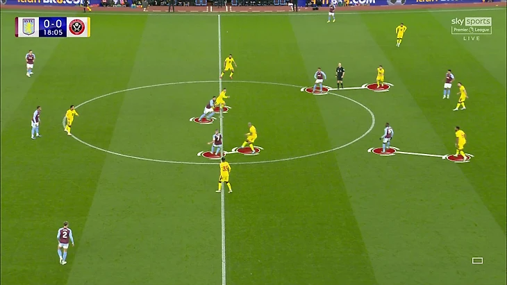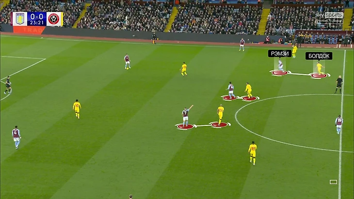 Уайлдер академично выключил план А «Виллы» – перешел на 5-4-1 (знакомая схема, но после возвращения чаще играл с четверкой). Внутри этой формации организовал персональную игру по центру «Виллы». Два опорника против Макгинна и Дугласа, два внешних центрдефа – по Диаби и Рэмзи: