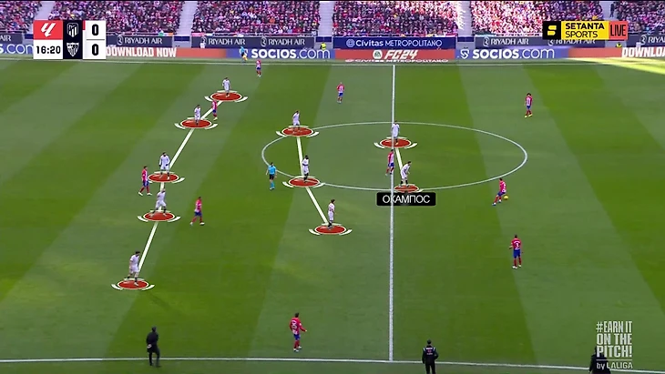 Из-за дисквалификации не мог играть защитник Марио Эрмосо – ключевой элемент гибрида «Атлетико», который отвечает за продвижение мяча. Аналогов Эрмосо просто нет, пришлось придумывать треугольник на левом фланге.