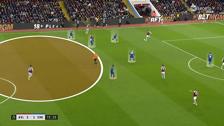 ● Игроки скапливаются в слепой для соперника зоне – большая группа игроков «Тоттенхэма» обороняется по зонам и не видит оппонентов в момент подачи: