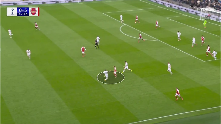 У «Тоттенхэма» нашелся ответ – Кристиан Ромеро в качестве адресата любой подачи. Его частым оппонентом был Мартин Эдегор. Аргентинец доминировал в этой дуэли, часто хитро раздвигая рамки дозволенного в борьбе. Ему помогала возможность разбежаться перед контактом с мячом – Ромеро стартовал не в одиночку, а в группе из трех футболистов, дальнейшие дуэли формировались лишь по ходу эпизода: