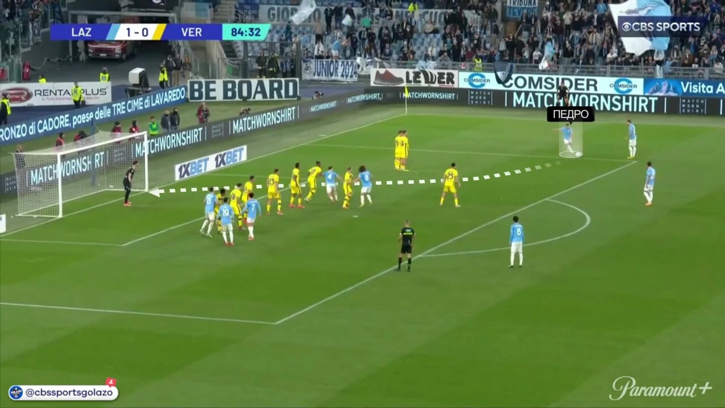 Педро был очень близок в матче «Лацио» против «Вероны» (1:0). Закрутил в штангу с такой точки: