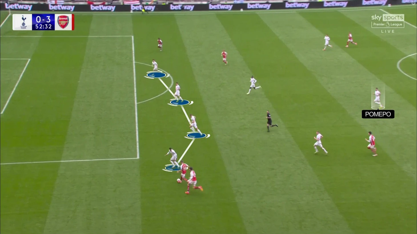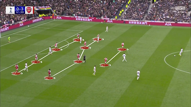 Команды четко распределились по ролям: «Тоттенхэм» стремился доминировать и владеть мячом, а «Арсенал» выстраивался в 4-4-2 для сдерживания. Самая частая картина в матче: