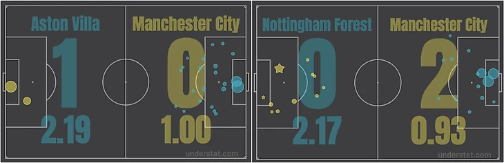 Вот показательное признание от Пепа после игры: сказал, что в прошлом сезоне, когда сыграли с «Ноттингемом» всего лишь вничью, «Сити» был в миллион раз лучше, чем сегодня. По версии Пепа, в текущей кампании худший матч был против «Астон Виллы». Имел в виду соотношение ударов и территориальное доминирование соперника. У «Ноттингема» его не было, но преимущество хозяев по xG было аналогичным.
