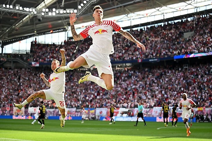 В ответ увидели постоянное движение атакующей четверки «Лейпцига» (конечно, как всегда выделялись Хави Симонс и Лои Опенда), навесы Давида Раума, контрпрессинг опорников Ксавера Шлагера и Амаду Айдара, пасы Кастелло Лукеба из первой линии, включения Мохамеда Симакана с позиции правого защитника.