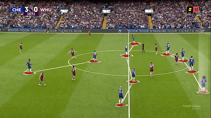 Удачная серия совпала с отсутствием Энцо Фернандеса и сменой роли Марка Кукурельи. События взаимосвязаны. Фактически испанец начал исполнять обязанности Энцо в опорной зоне. Без мяча все еще играет классического фулбека: