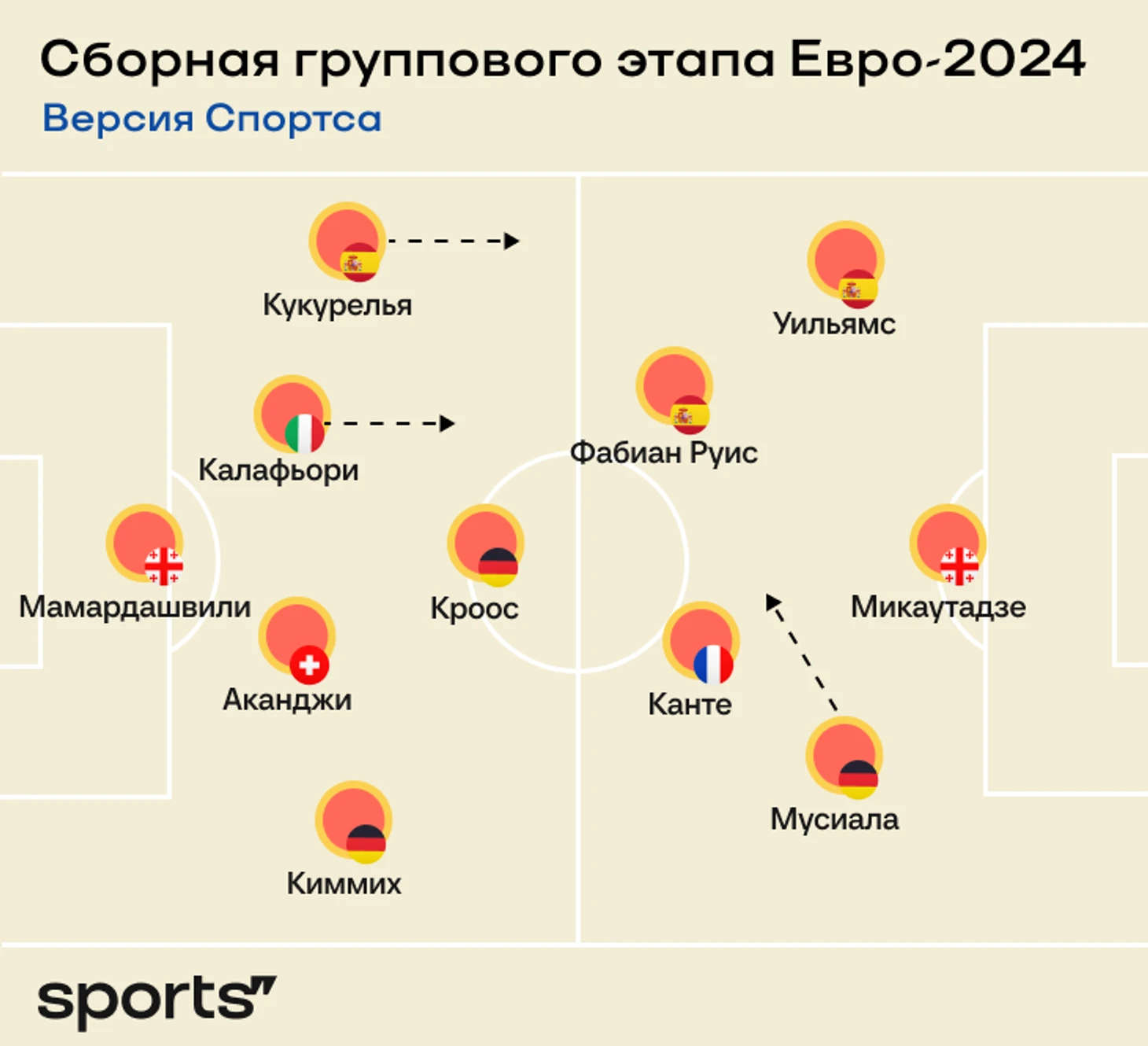 Остается плеймейкером, несмотря на то, что закован на фланге, а Германия плетет комбинации в середине. По созданным моментам Йозуа обгоняют всего три игрока на этом Евро (двое из них – Эриксен и Де Брюйне). Есть вопросы к игре без мяча, но полную проверку Киммих получит только в плей-офф.