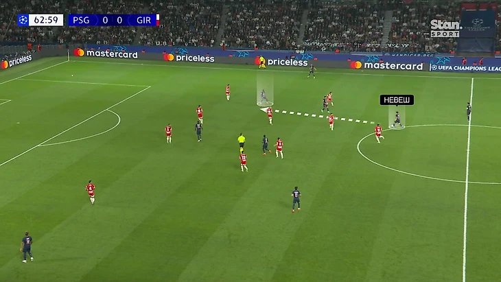 Рисунок встречи изменился после порции замен на 63-й. Луис Энрике выпустил Ли Кан Ина, Дезире Дуэ и Жоау Невеша. После изменений «ПСЖ» довел владение до 77%, а счетчик ударов – до 12:0. «Жирона» вжалась, не показывала контригры, а хозяева начали создавать по-настоящему опасные шансы.