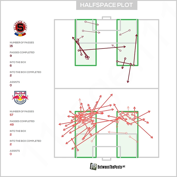 Ключевая причина атакующей импотенции «Зальцбурга» – предсказуемость и однофланговость. Почти вся активность в позиционных атаках сводилась к правому краю: