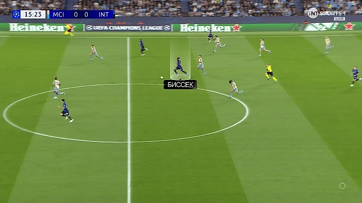 Сюрприз, с которым «Сити» тоже не справился, – подход гостей к контратакам. Часто атакующую группу поддерживали защитники «Интера». В паре эпизодов в этом был замечен даже Янн Биссек, игравший в центре обороны: