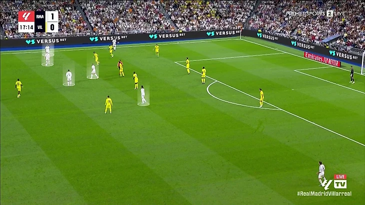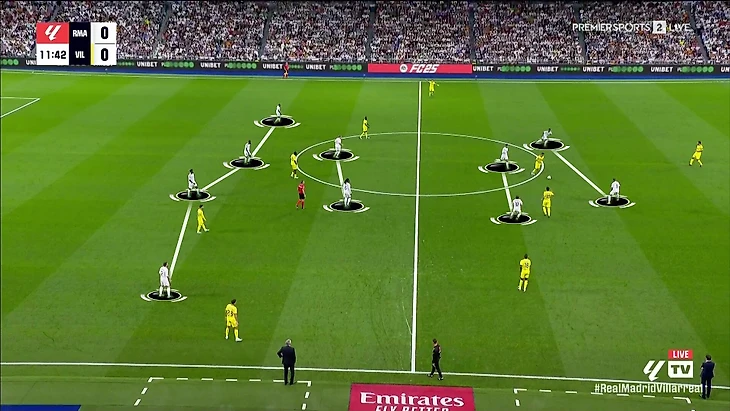 Против «Вильярреала» Карло Анчелотти опробовал формацию 4-2-2-2. Так его футболисты выстраивались без мяча: