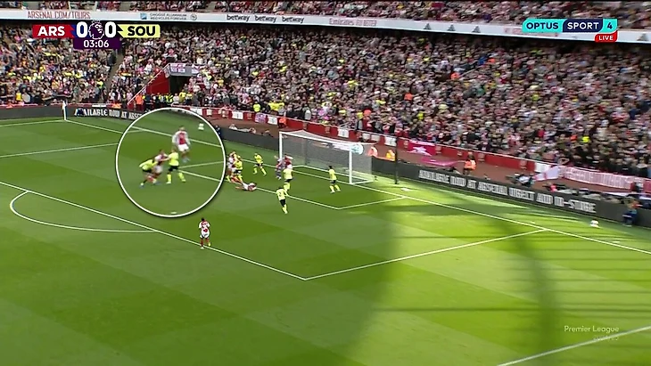 Первый мешает сразу, а второй следит за траекторией и создает дополнительную помеху после неизбежного отрыва от первого. Совсем без угрозы не обошлось, но, учитывая количество угловых (13 штук), «Саутгемптон» неплохо отбивался, но все равно проиграл 1:3.