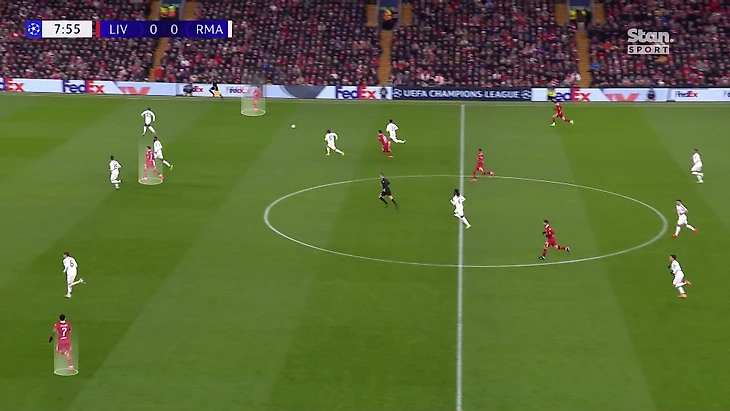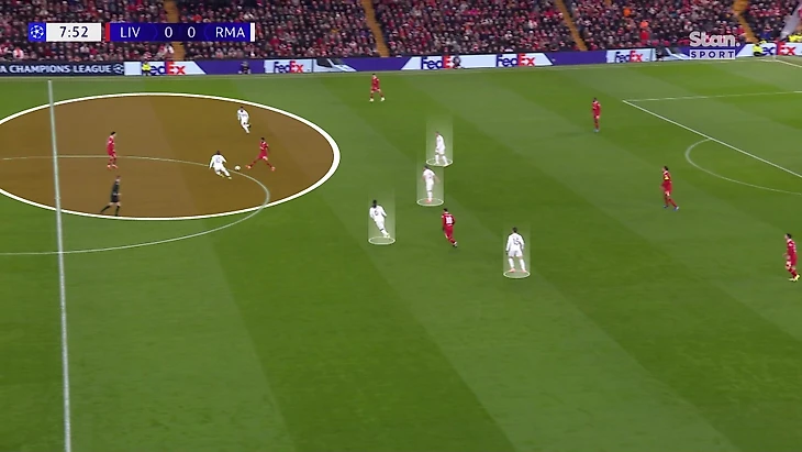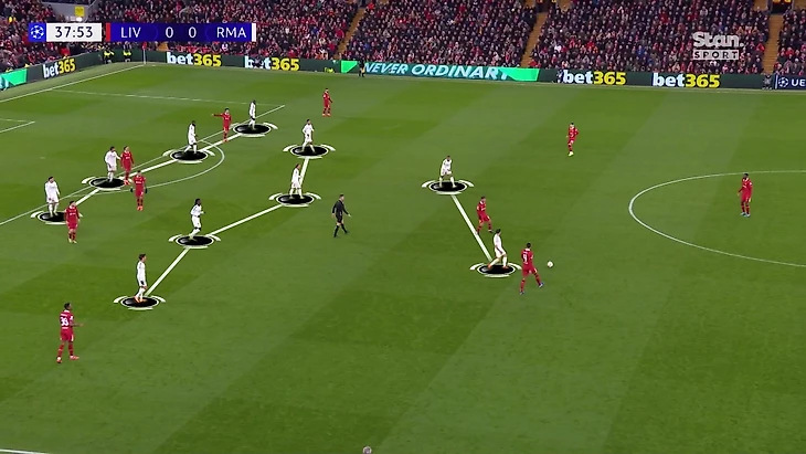 В начале матча против «Мадрида» (2:0) таких спровоцированных дыр было неприлично много. В результате «Реалу» пришлось сесть в совсем явный автобус, а «Ливерпуль» получил тотальный контроль. На этом этапе гости выстраивались в глубокие 4-4-2 – не 4-4-0-2 как в иных играх этого сезона:
