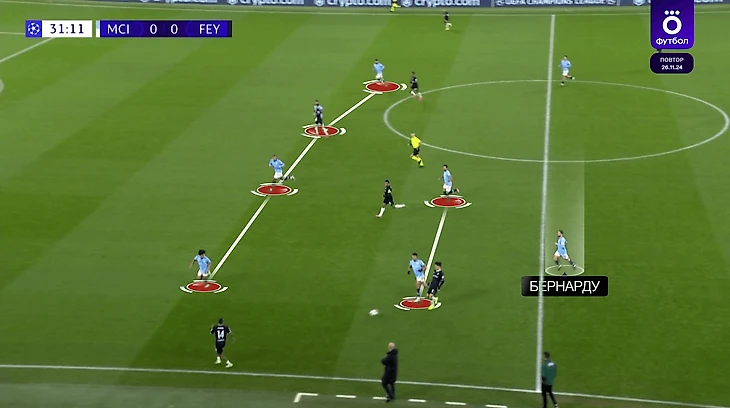В концовках таймов «Сити» переставал и начинал уставать. Все чаще переходили из прессинг-режима в средний блок с неприлично высокой линией обороны. Из-за нехватки сил не успевали перестроиться. Неприятные сигналы команде подавали еще до перерыва: