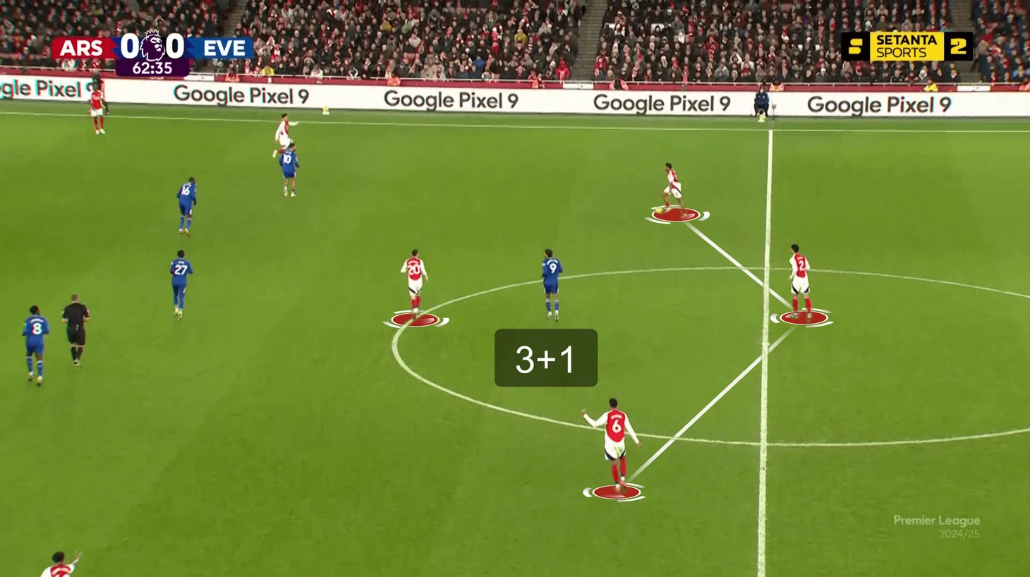 На что рассчитывает тренер, меняя самого креативного игрока? Очень просто – задавить соперника количеством, а не качеством. Оба раза «Арсенал» рисковал и переходил на более смелую структуру. Классика Артеты – 3+2 в первой стадии. Убирая Эдегора, переходят на 3+1: