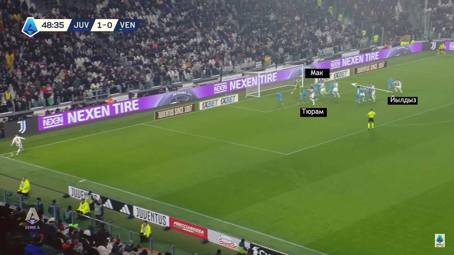 Во втором тайме «Юве» повторил. Все то же движение Маккенни, такой же навес на Тюрама и скидка на дальнюю, только на этот раз Йылдыз успел раньше Гатти. И тоже забил.