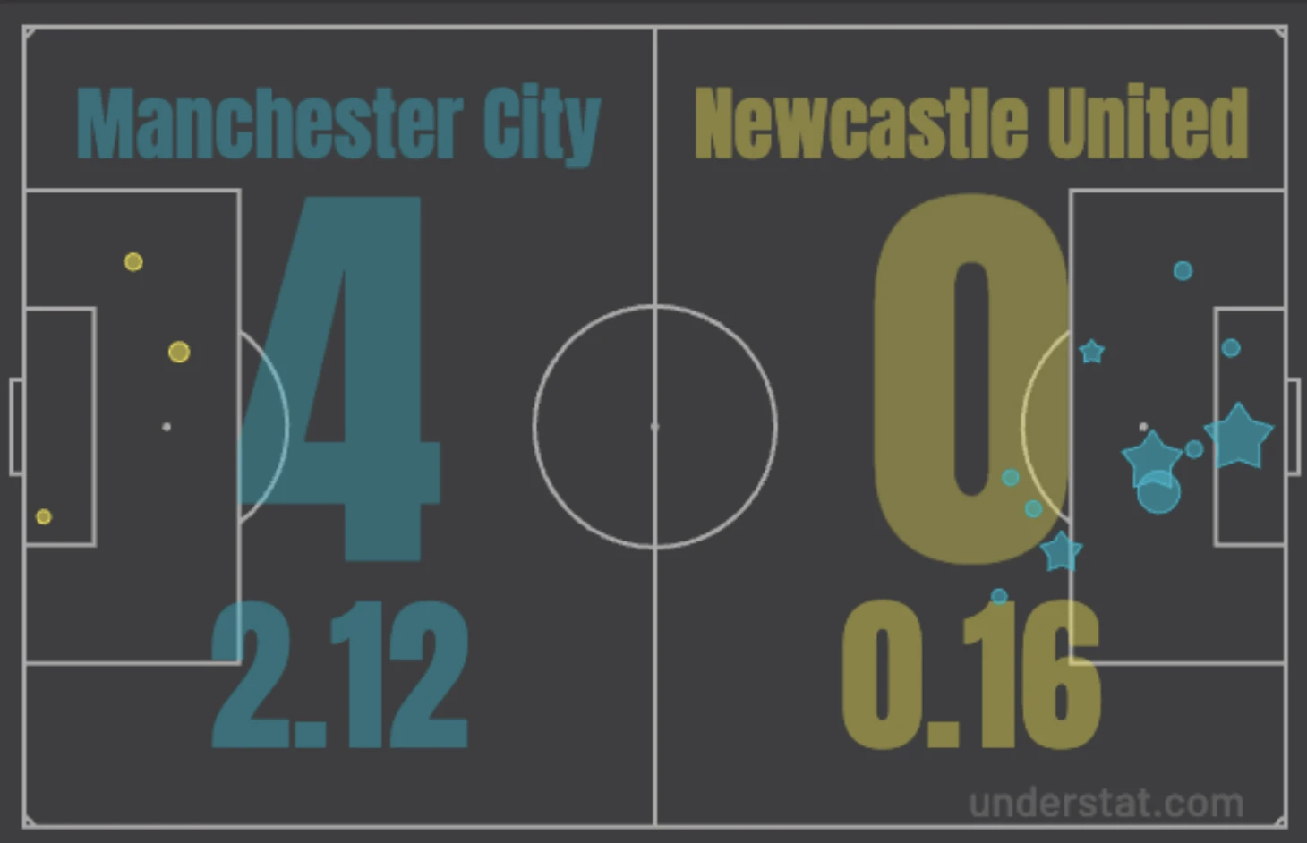 «Ман Сити» внезапно разгромил на своем поле «Ньюкасл» (4:0). Есть все поводы утверждать, что команда Гвардиола выдала лучший матч в сезоне. Самая впечатляющая часть – игра в обороне. «Ньюкасл» за весь матч сподобился на 3 удара общим весом 0,16 xG. Так мало «Сити» не допускал в АПЛ с 11 мая прошлого года.