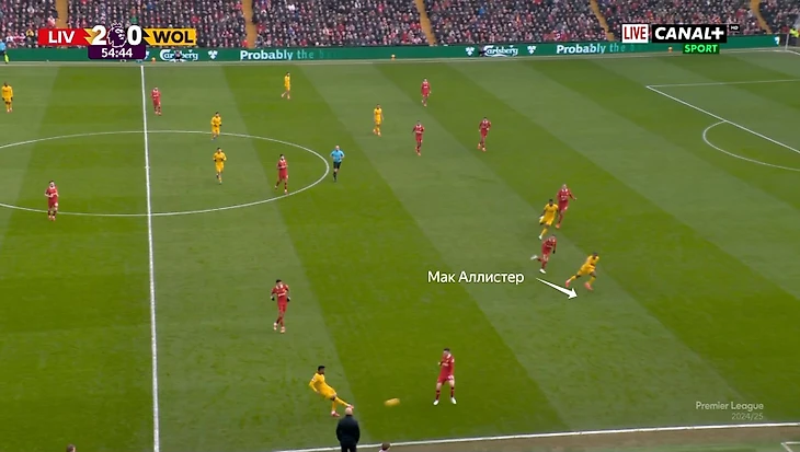 Велик соблазн сказать, что Арне Слот решил сохранить результат и закрыться. Но «Ливерпуль» не совсем отдал инициативу (процент владения снизился с 52% до 47%) и лишь чуть снизил интенсивность в прессинге.