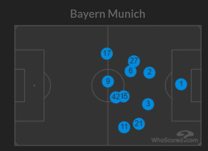 По сезону «Бавария» – с отрывом самая территориально доминантная команда Европы. Прессинг не только сдвинул весь рисунок матча на половину «Баварии», но и выступил отличным оборонительным инструментом. За всю игру «Бавария» нанесла всего 2 удара (0,05 xG).