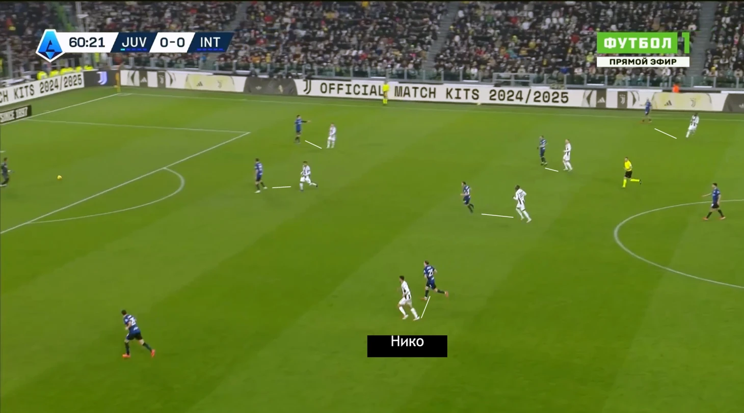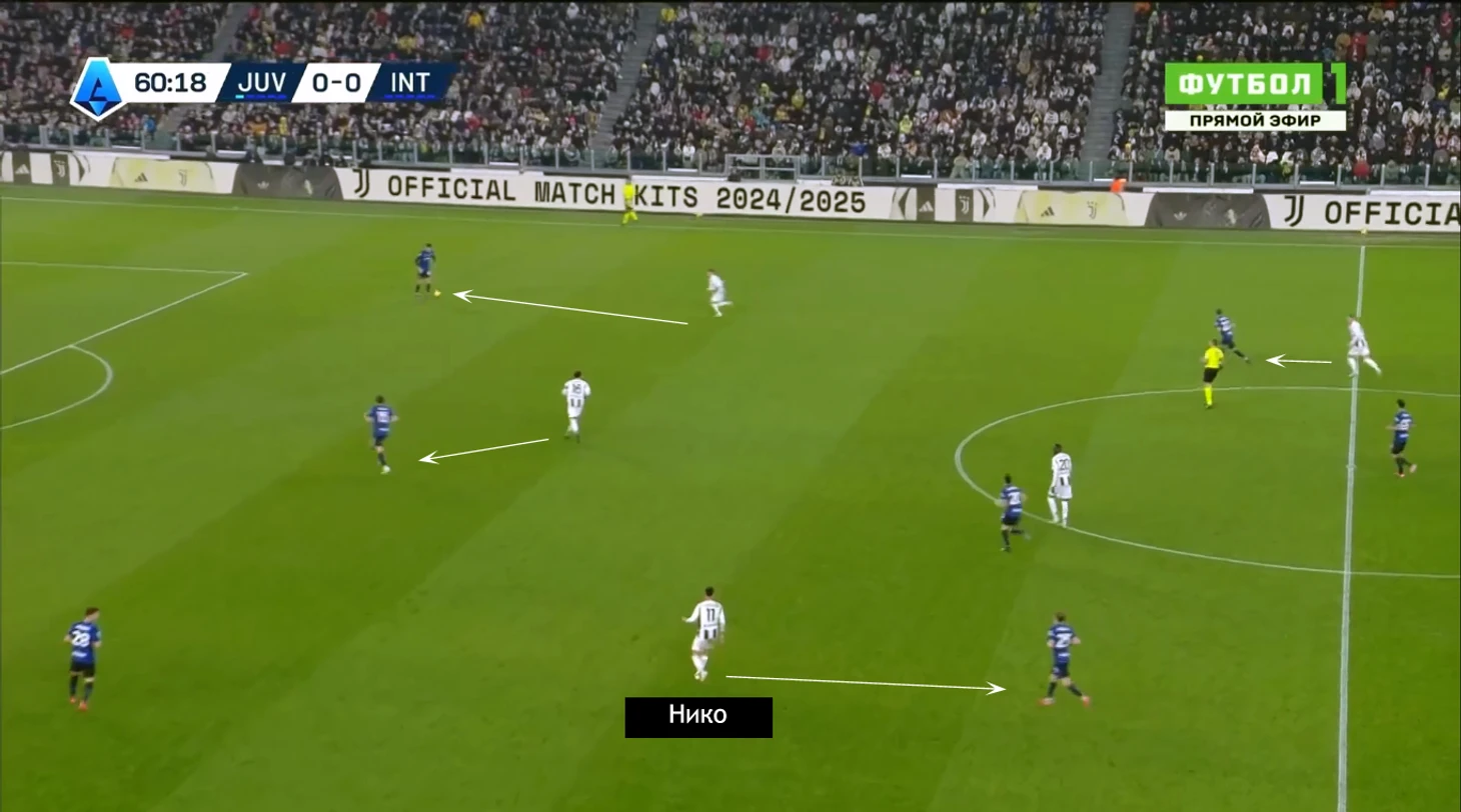Прессинг «Юве» и в первом, и во втором тайме переключался со среднего на активный персональный, когда «Интер» активировал триггеры. Но Мотте присуща адаптивность в давлении, легкие корректировки под соперника сразу после перерыва. С миланцами, даже уставшими, они были необходимы.