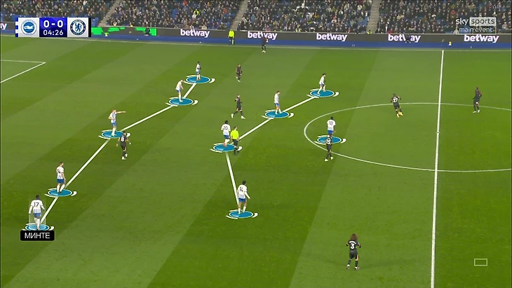 Отдельно стоит уточнить, что при прессинге из-за персоналок «Брайтона» у Минте была вообще третья роль – он действовал по Энцо Фернандесу. Эту работу тоже проделал качественно: