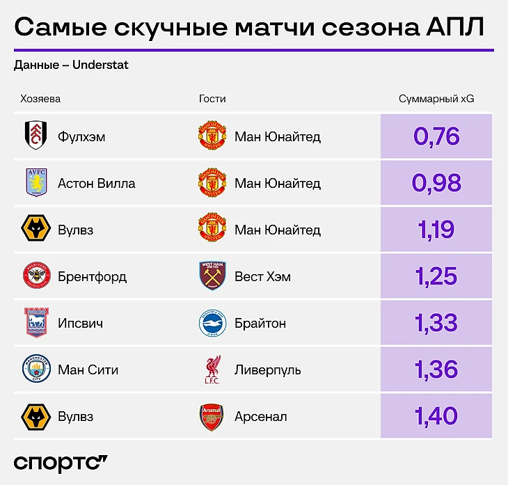 ● Специфика матчей «МЮ» при Амориме – игры предельно закрытые, пока кто-нибудь не откроет счет. В тот раз гола ждали 78 минут – дольше всего в эпоху португальца;