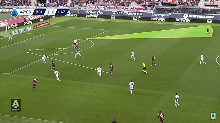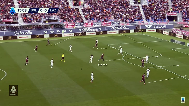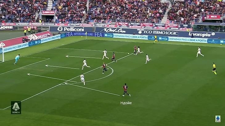 За мгновение до того, как открыть счет, Одгор бежал рядом с Гендузи. Француз его бросил, но его сложно винить. Четыре болонца одновременно забегали в слепые зоны за защитниками, слева было численное преимущество, Ровелла застрял выше.