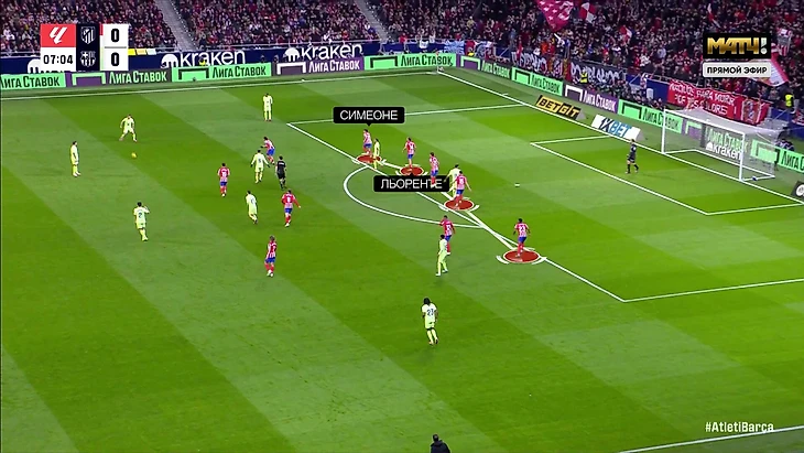 В большинстве игр «Атлетико» действует со схемой 4-4-2. Обычно ее хватает, чтобы держать компактность, поддавливать на флангах и с большей остротой убегать в контратаки. Даже с «Реалом» Чоло использовал ее, пока команда не подсела физически в дополнительное время. Против «Барсы» с первых минут был выбран самый осторожный вариант.