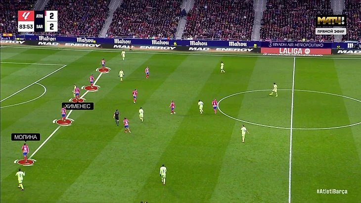 Третий аспект – усталость «Атлетико» и замены Чоло, которые прямо с ней связаны. Аргентинец выпустил Хосе Хименеса (третий центральный защитник) и Науэля Молину (чистый правый защитник):