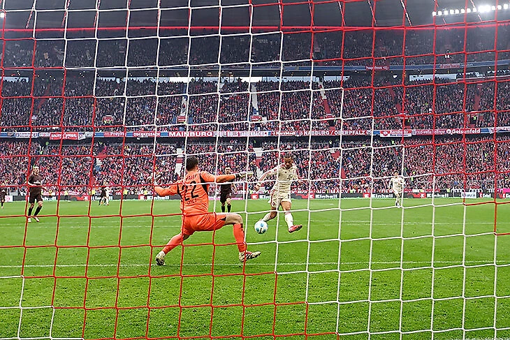 Интересно, что получилось забить дважды в переходных фазах против «Санкт-Паули» – не сильной команды, но очень организованной, одной из лучших с точки зрения обороны в Бундеслиге. Одна из сильнейших сторон «Санкт-Паули» – позиционная защита, так что «Баварии» было логично пробовать поймать соперника именно в переходах.