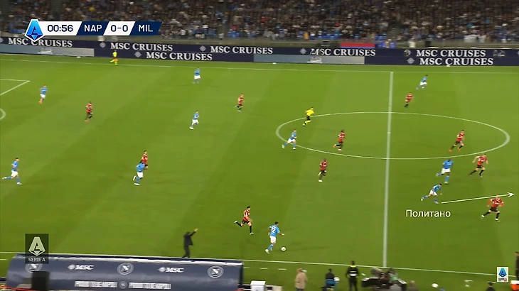 Консейсау не учел, что Конте готов к такому сценарию, а его «Милан» не умеет защищаться в одну линию. Первый гол – забег Политано за спины после заброса из глубины.