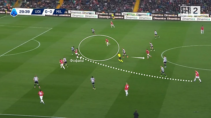 Под «Удинезе» Сержиу Консейсау перестроился на схему 3-4-2-1. «Милан» без Кайла Уокера строил атаки через розыгрыши на флангах и широкие роли атакующей тройки (часто опускались ниже за мячом и вытягивали защитников из линии).