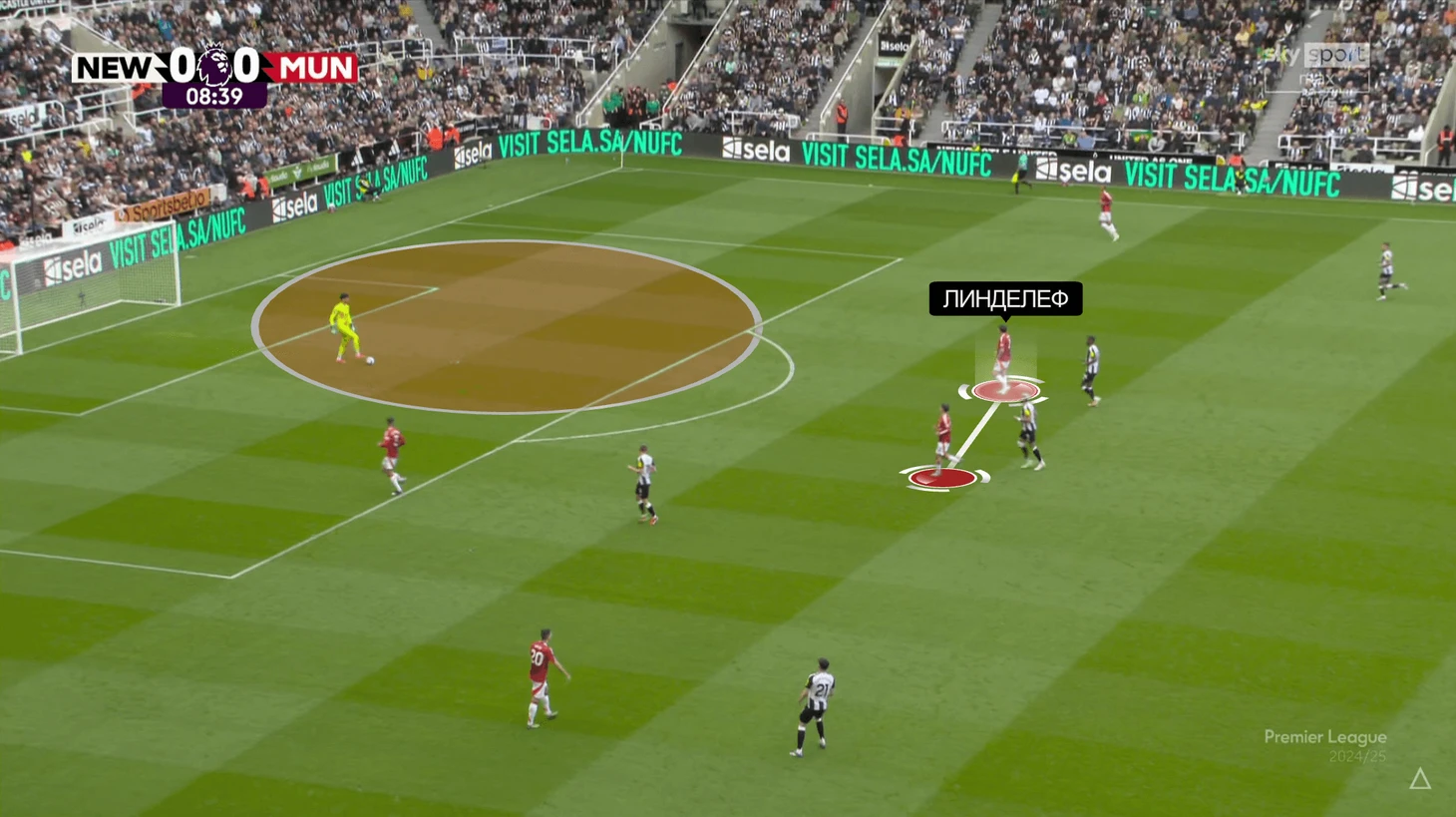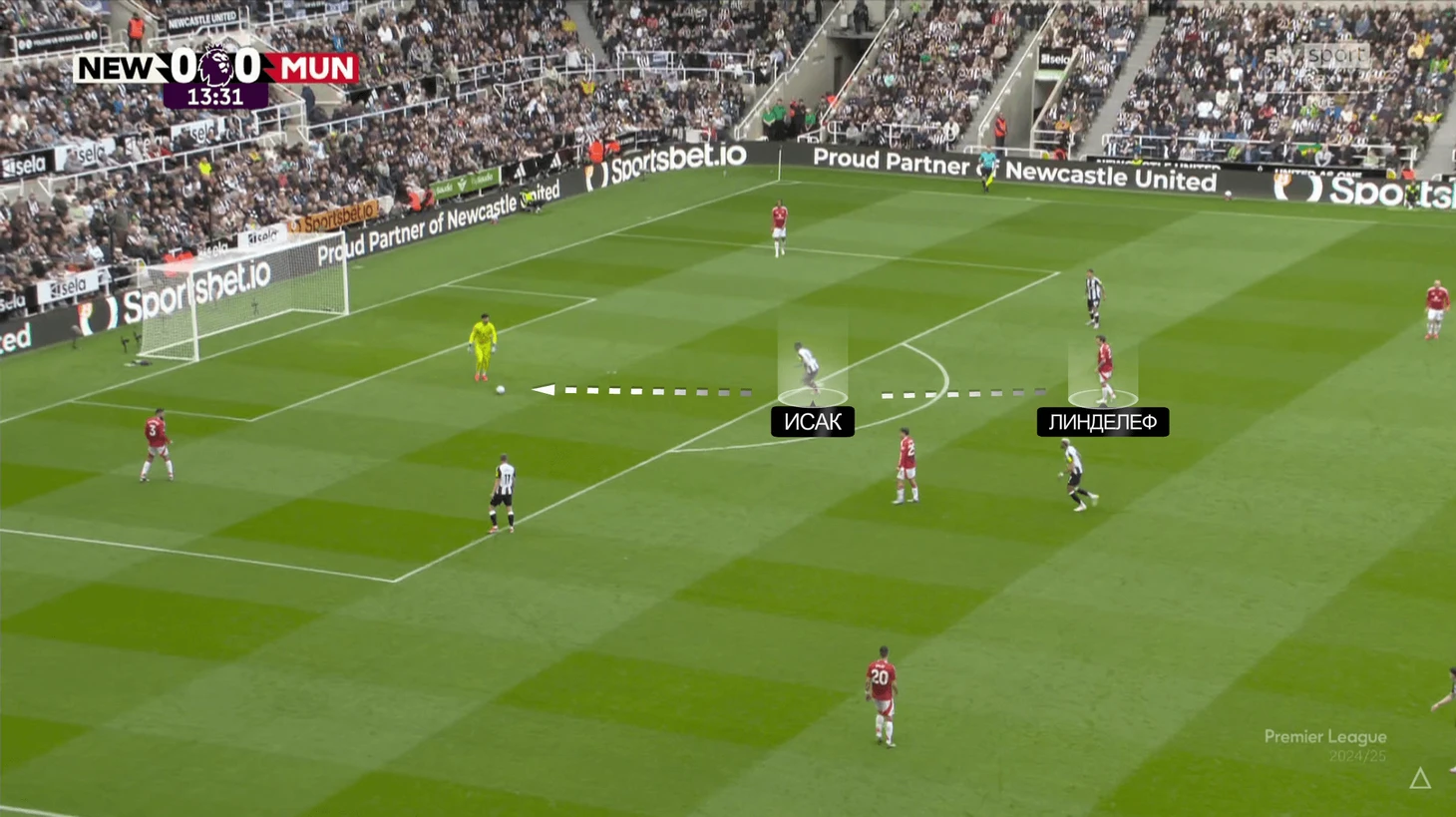 В классическом сценарии «Юнайтед» просто загоняет себя в одну часть поля и дальше не может из нее выбраться. В сценарии матча с «Ньюкаслом» идея не просто не помогала, а вредила. Команда Эдди Хау выбрала персональный тип прессинга, в котором Линделефа перекрывал Александр Исак. В определенный момент нападающий бросал защитника (понимал, что не накажут) и выдвигался на Алтая Байындыра: