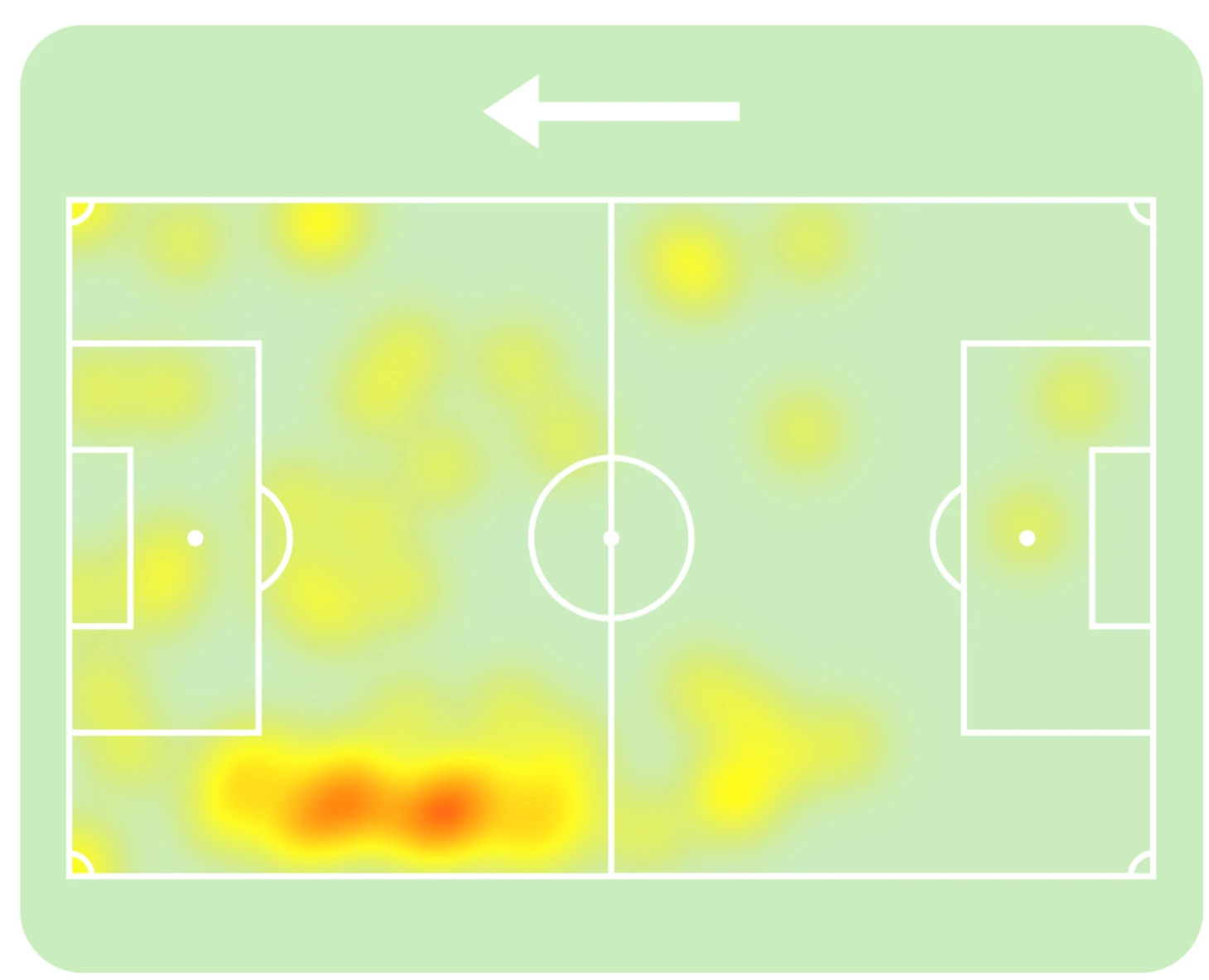 Такой расклад привел к внезапной трансформации роли Рафиньи. Эту встречу бразилец доигрывал, закрывая бровку в ширину, что привело к такой карте передач:
