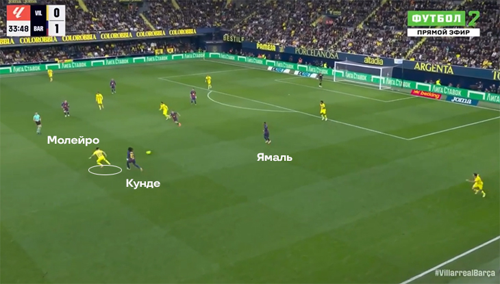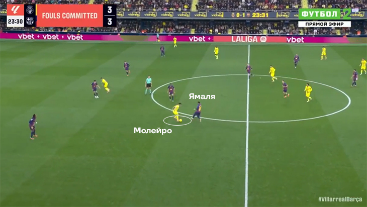 Но именно в переходах план сработал. Альберто Молейро успешно двигался в центр, пользовался пространством. Ямаль не успевал, а Фермин не помогал.