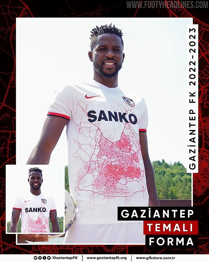 В Турции также не обошлось без картографии. «Газиантеп» презентует стильную выездную форму с картой одноименного города.