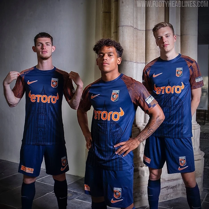Одна из лучших архитектурных отсылок в этом сезоне принадлежит «Витессу». Отличное сочетание темно-синих футболок с оранжевыми узорами на рукавах венчает изображение Гроте керк, она же церковь Святого Евсевия в городе Арнем.